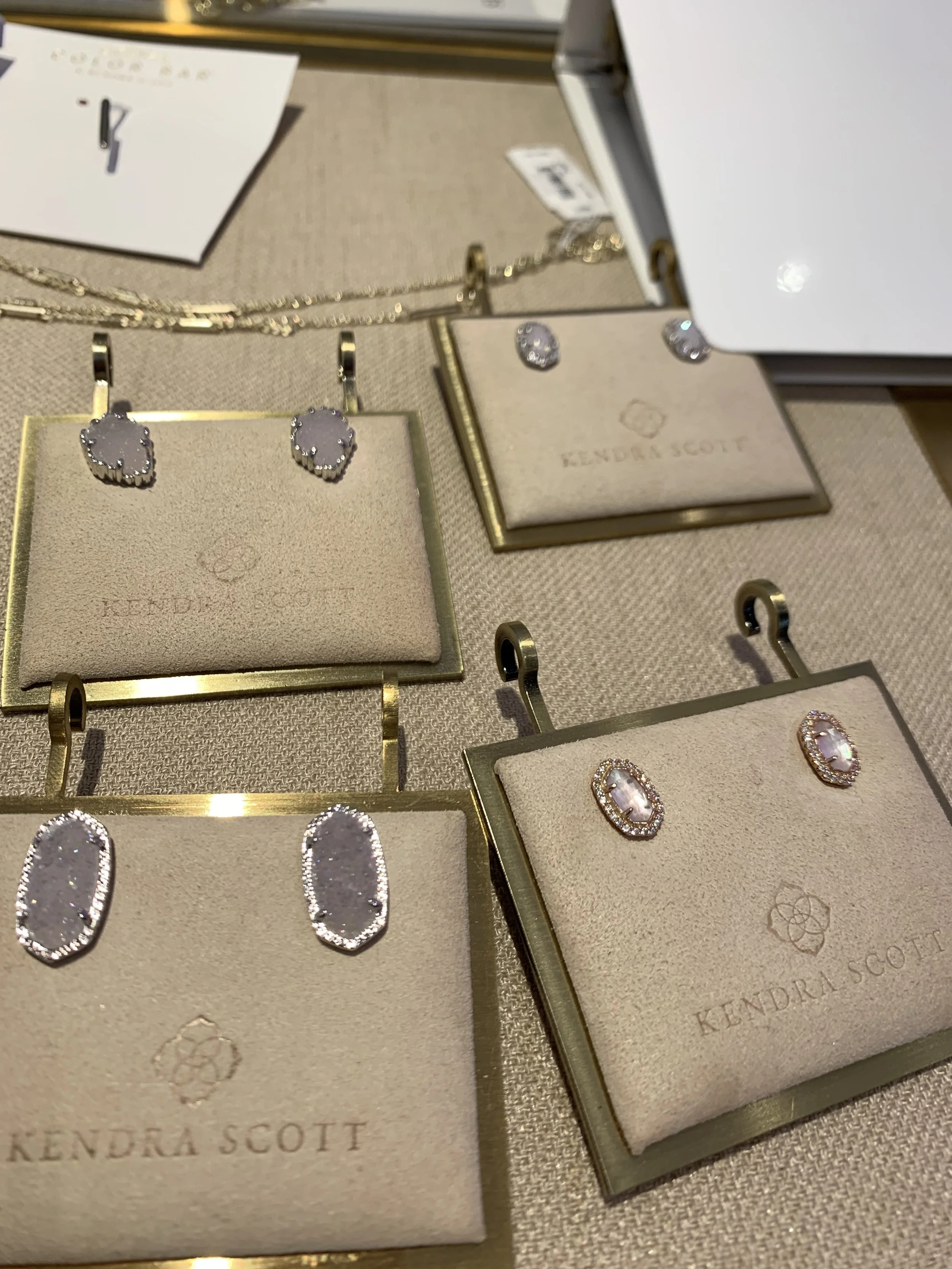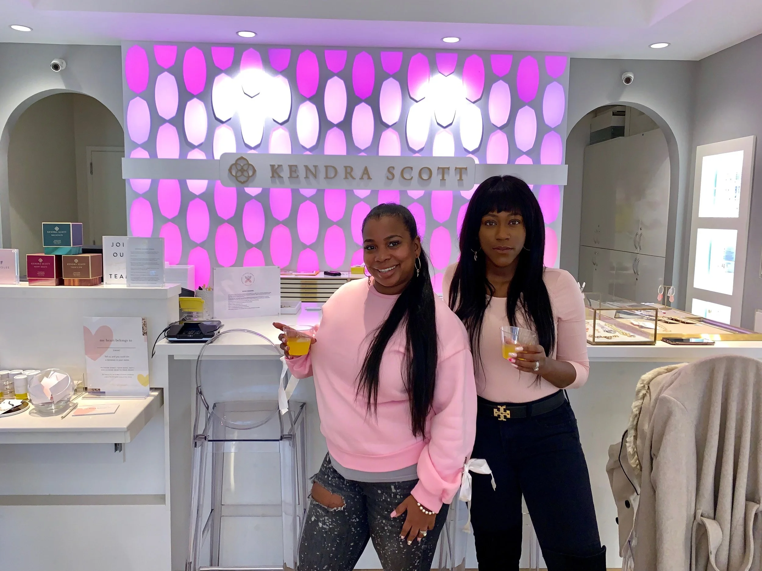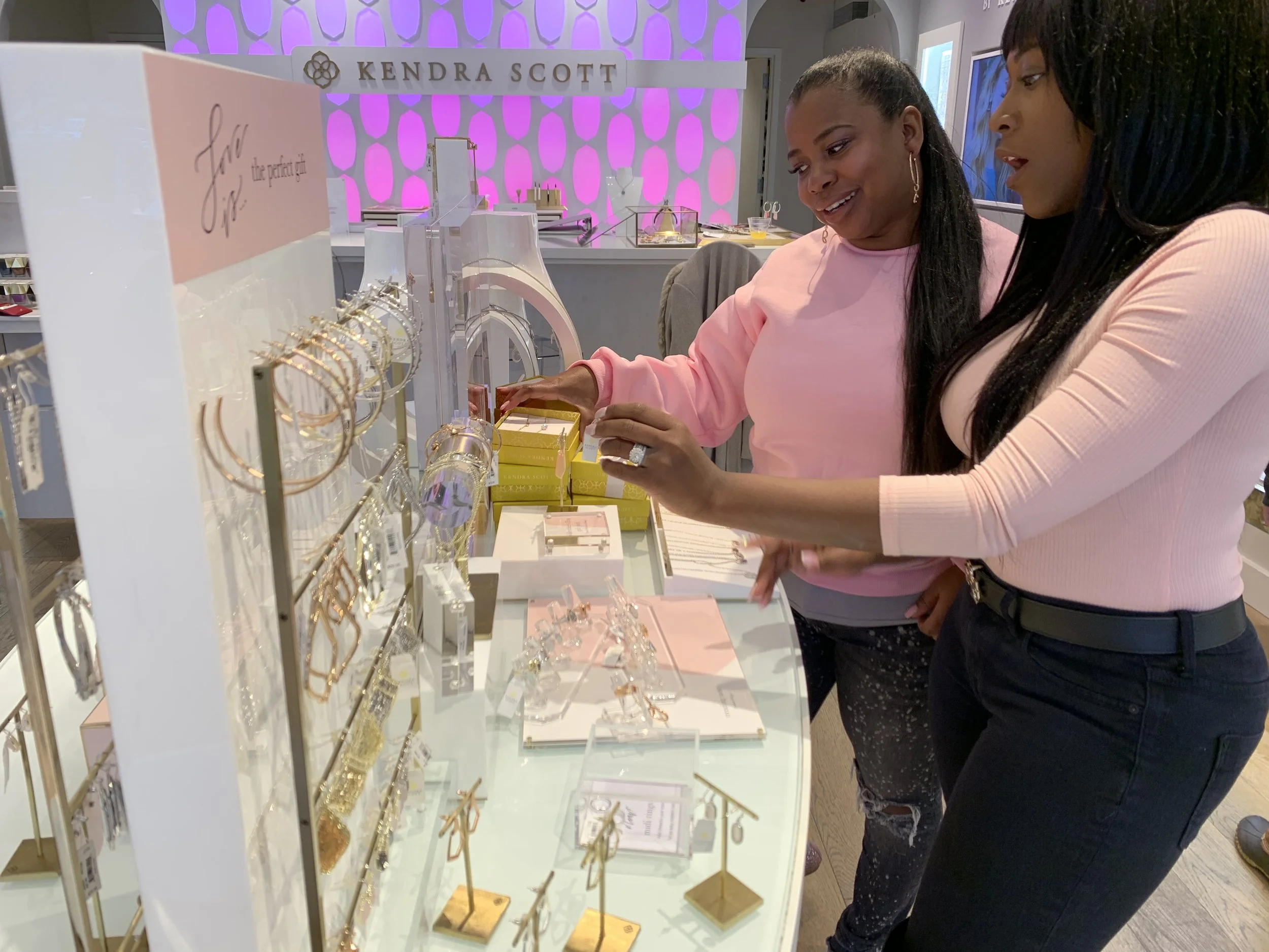 Kristen and Amanda gave us the best shopping experience ever!!! They truly treated us like family and helped us find the perfect pieces!! We fell in love with Kendra Scottโs philosophy of shopping for jewelry in the same way you do clothes. I mean how cool is it to touch, try on, and personalize your jewelry? I mean you can choose stones, charms, and setting for anything your heart desires! I could go on forever about the experience we had but I need to keep this to 15,000 words or less. Hahaha, jk! One thing I have to touch on is the atmosphere!!! I mean look at how beautiful this retail space is! This space was inviting, lively, and so fun to be in! Chanda nor myself owned any jewelry from Kendra Scott before Sunday but after the experience we had, I am proud to say I will be shopping there again, and again!!